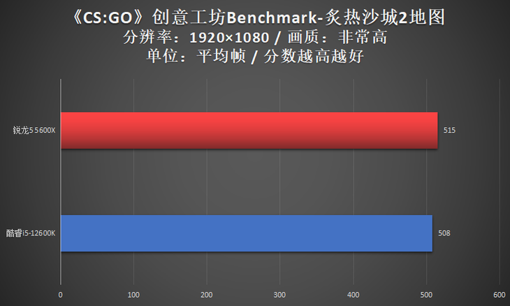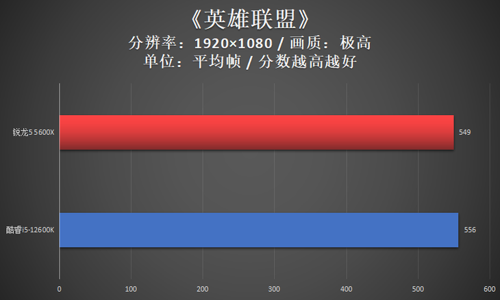别看酷睿i5-12600K的核心数量、线程数量都要比锐龙5 5600X多出不少,但是在网游游戏的表现上,锐龙5 5600X的实力可是不容小视的!接下来的电竞网络游戏的对决结果,玩家们一看便知。