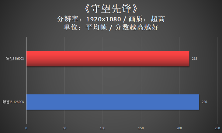 《守望先锋》这款游戏,酷睿i5-12600K优势明显。