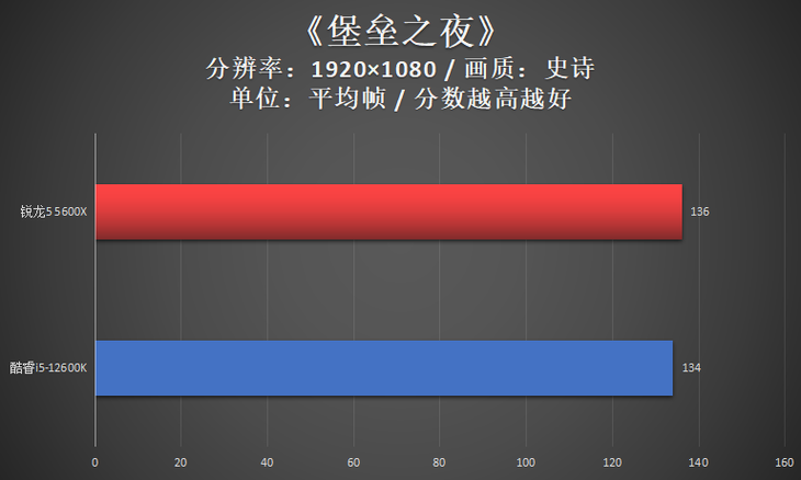 《堡垒之夜》这款游戏,这两款处理器几乎处于同一性能水平。