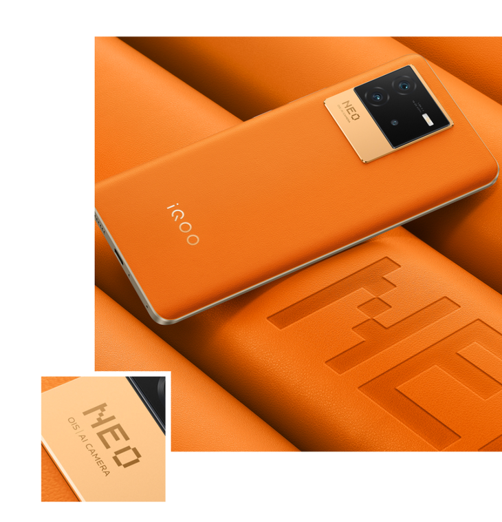 预热海报提到,iQOO Neo6外观采用复古未来主义,摄像头模组设计灵感来源于经典的35mm胶片,配合金属云阶,形似拍立得相纸。其中橙色采用具有时代感的素皮工艺,黑色采用高端萤石AG玻璃。