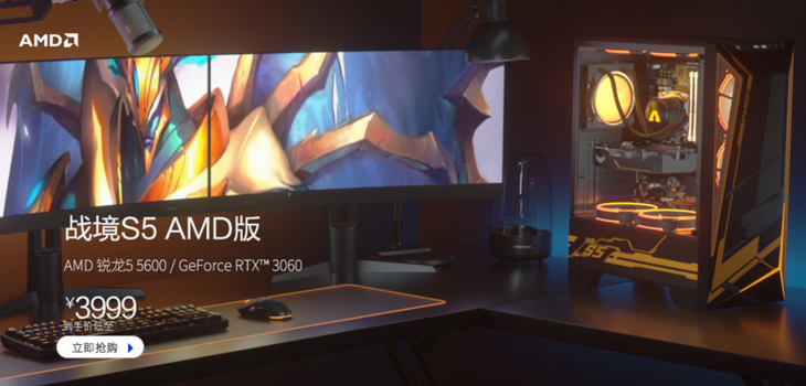 攀升战境S5 AMD版高性能游戏主机代号“红色风暴”,其(旗舰版配置五)采用了锐龙5 5600处理器搭配RTX 3060显卡的硬核组合。