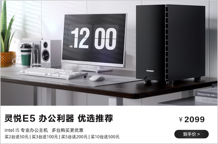攀升灵悦E5商用办公主机的售价相当实惠,目前仅售2099元起。即使是最便宜的机型(配置一),整机性能也是相当不错的,特别适合追求高性价比的企事业单位。