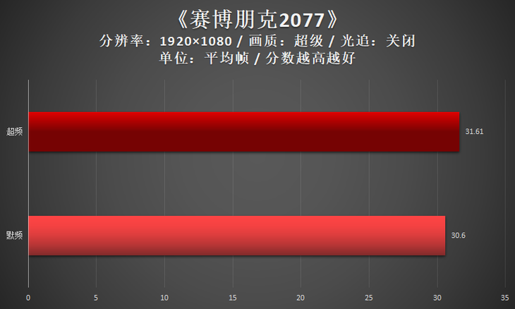 对于《赛博朋克2077》这种新时代游戏大作,超频之后只有1帧左右的游戏帧率提升。而对于《CS:GO》这种高帧率的电竞游戏,超频之后游戏帧率提升比较明显,能带来10帧以上的性能提升。