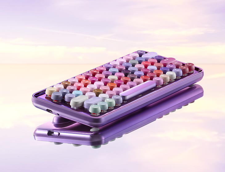 雷柏ralemo pre5多模无线背光机械键盘姹紫嫣红版是一款很有个性的机械键盘,采用冷调紫电镀底盘,搭配79种色号键帽,呈现多彩浪漫的视觉效果,相信能够轻松收获女生的喜爱。