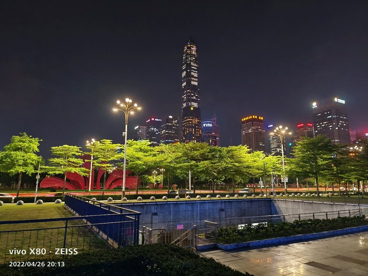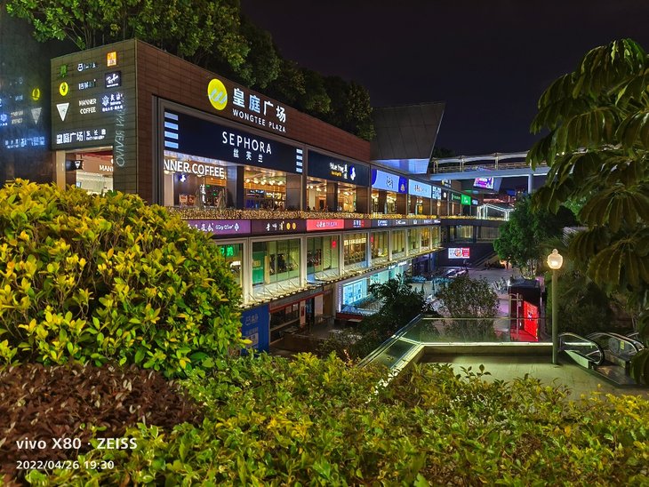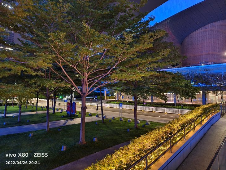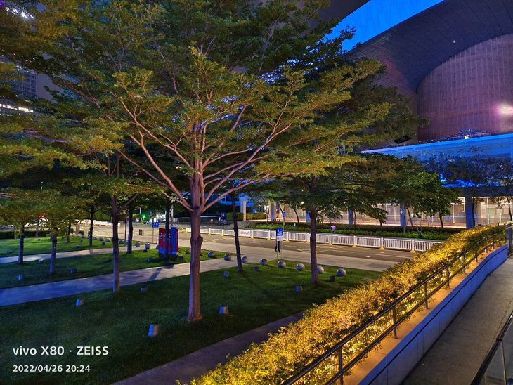 在暗光环境下,默认拍摄模式应该已经融入了夜景算法。主摄样张对高光压制到位,暗部有丰富的细节,画面纯净,成像速度很快,很容易拍出令人满意的效果,还可以开启手动夜景模式。在比较暗的环境下拍摄,取景框会显示预估曝光时间,拥有更好的拍摄体验。