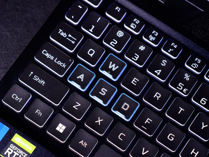 A、D、W、S按键采用了比较醒目的键帽设计。