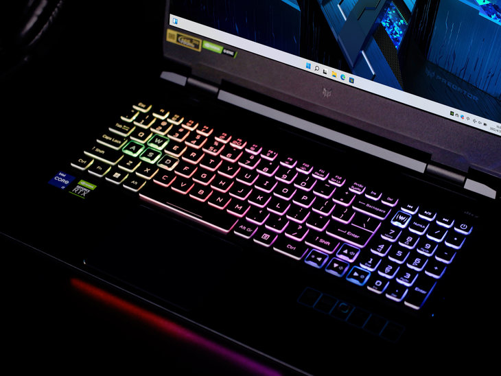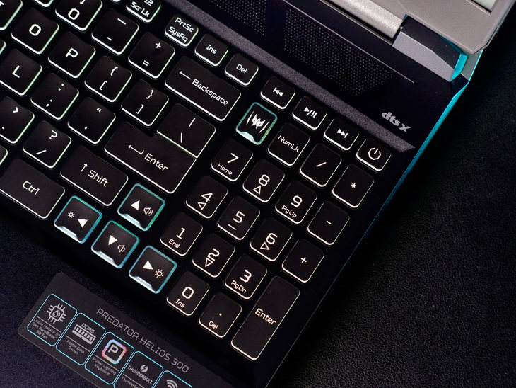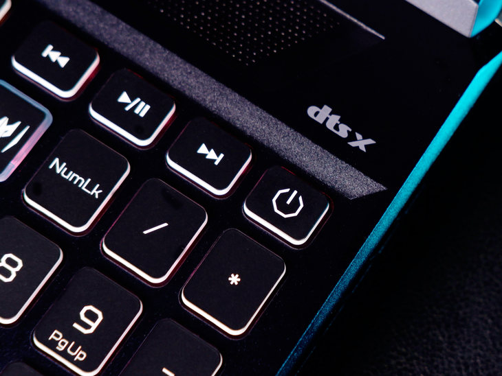 这款游戏本采用了RGB背光键盘(附带独立数字键盘),支持多种背光灯效模式以及亮度调节。玩家可以通过系统里自带的PredatorSense控制软件对RGB键盘进行设置。