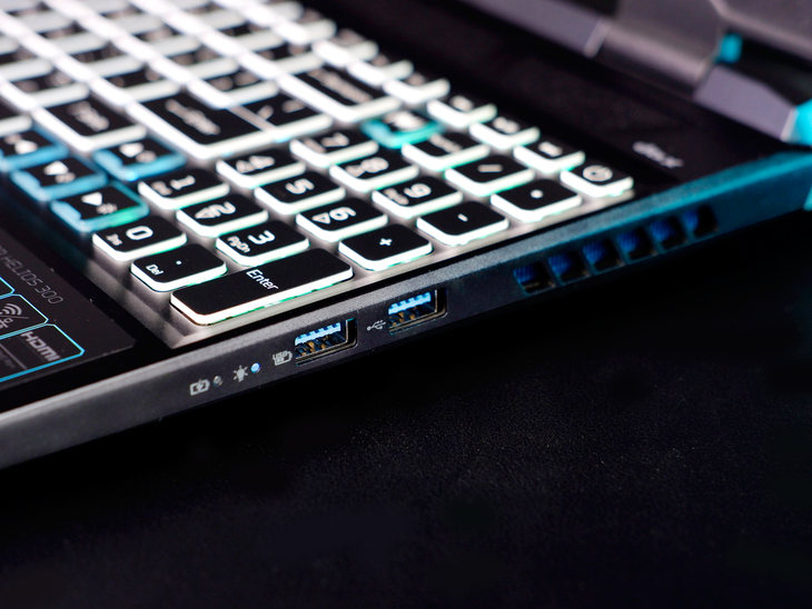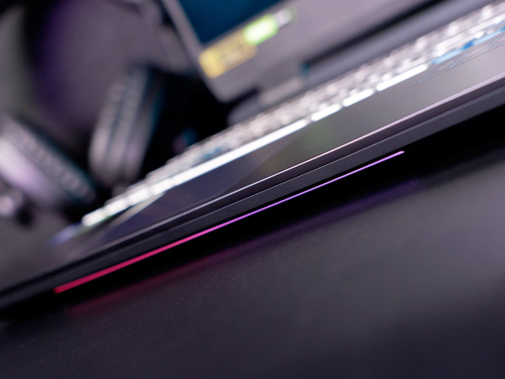 为了让这款游戏本更加炫酷,它的键盘面前端下部特别设计了一条炫光RGB LED灯带。这条灯带的灯效能够与RGB键盘同步,在PredatorSense控制软件里面进行设置就好。