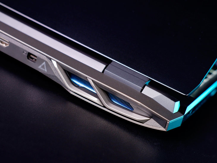 新一代的掠夺者战斧300游戏本对机身后部的散热排风口进行了外观调整,看上去更加帅气。