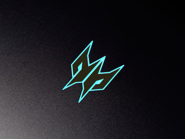 顶盖的这枚掠夺者徽标在电脑开机后会亮起蓝色的灯效。注意,灯效颜色不能调节,只能是蓝色。