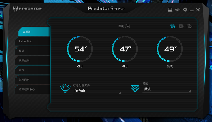 PredatorSense是这款游戏本的主控制软件,在这里可以对这款游戏本进行详细的设置。