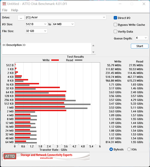 在此,补充了一项ATTO Disk Benchmark测试,作为参考。