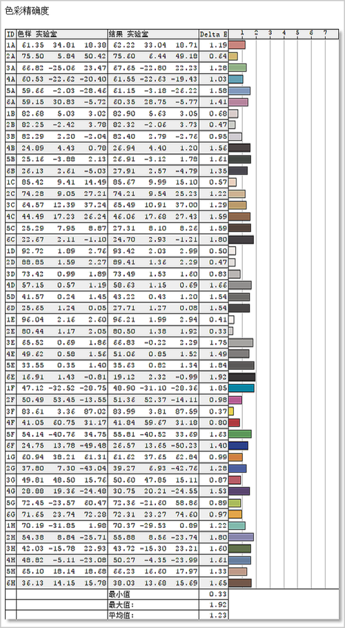 平均△E为1.23,△E≥2的颜色完全没有。这块屏幕的色准相当棒,笔者大赞!