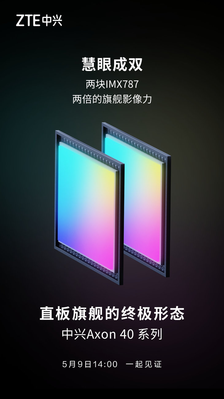 5月4日,中兴手机官方宣布,中兴Axon40 Ultra将会配备两块IMX787大底,带来不止两倍的旗舰影响力。