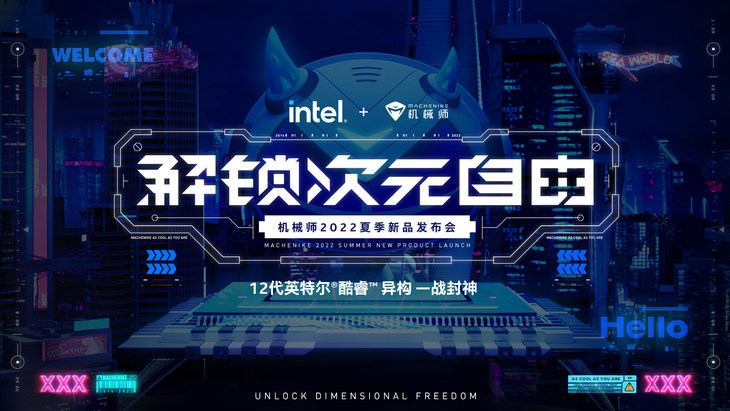 首先来瞧一瞧机械师2022夏季新品发布会的主题海报。此次发布会将以“解锁次元自由”为主题。怎么解锁?什么次元?哪种自由?这些都是机械师目前留给大家的悬念。发布会主题海报的背景为充满未来感的赛博朋克画风,“12代英特尔酷睿异构一战封神”的标语,证明机械师肯定将要推出搭配12代酷睿处理器的电脑,笔记本、台式机都有可能。
