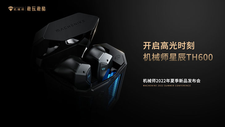 机械师TH600,一款真无线游戏耳机,黑色外观,搭配蓝色电竞光效。手机游戏玩家们可以多关注下。