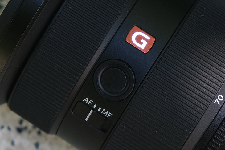 非常鲜明的红色“G大师镜头”标识与对焦模式拨杆,镜身还有2个可自定义对焦保持按钮