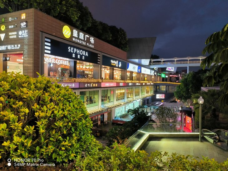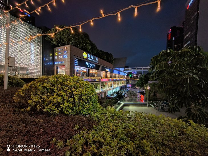 得益于主摄的超大底特性,主摄夜拍样张的画面清晰,给人一种很明亮纯净的感觉。画面整体色彩还原不错,在广告牌上,高光压制也十分到位,画面纯净通透,没有特别明显的噪点,质感不错。
