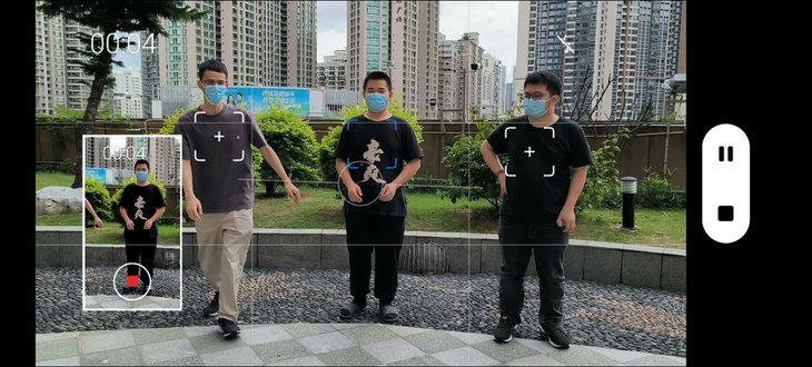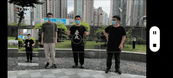 选择好主角人物后,录制视频过程中手机会智能追焦主角,实时把主角置于画面中央。录制结束后,手机会自动输出两路视频画面,包括全景画面和锁定的主角特写画面,不用多机位或者重复拍摄就能得到不同的视频画面。比如在多人舞蹈、亲子类活动等场景,通过Vlog主角模式,既能拍摄到主场景画面,也能拍摄到人物特写视频,方便不少。