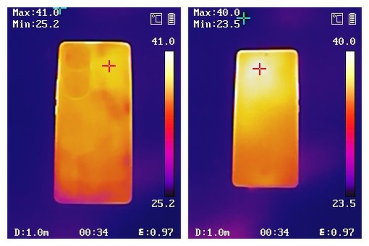 温度方面,在24度左右的室内,连续玩20分钟《原神》后,机身背面最高温度为41度,正面最高温度为40度。机身温度控制得不错,相信在更高一点的环境温度也不会太高。