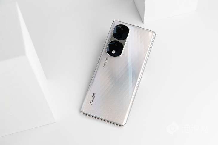荣耀70 Pro带来了全新流光水晶配色,在机身背面加入了菱格纹理,通过“双膜三纹双镀”工艺处理,营造出立体景深效果。在不同角度,可以看到手机后盖上整齐排列着很多有立体感的菱形纹理,效果闪亮,有点类似水晶的效果,带来更强的高级感。荣耀70 Pro代言人在预热视频中表示,“哇塞很漂亮”,这也是对手机颜值的肯定。