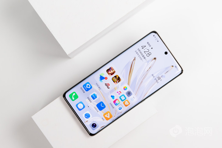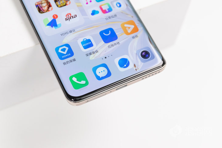 荣耀70 Pro配备一块6.78英寸的OLED屏幕,采用居中单打孔设计。屏幕为四曲面设计,边框都控制得非常窄,视觉沉浸感很好。屏幕的R角处理得比较自然,看起来很舒服。值得一提的是,屏幕下边框的曲面设计还能带来更加顺滑的全面屏手势操作体验。