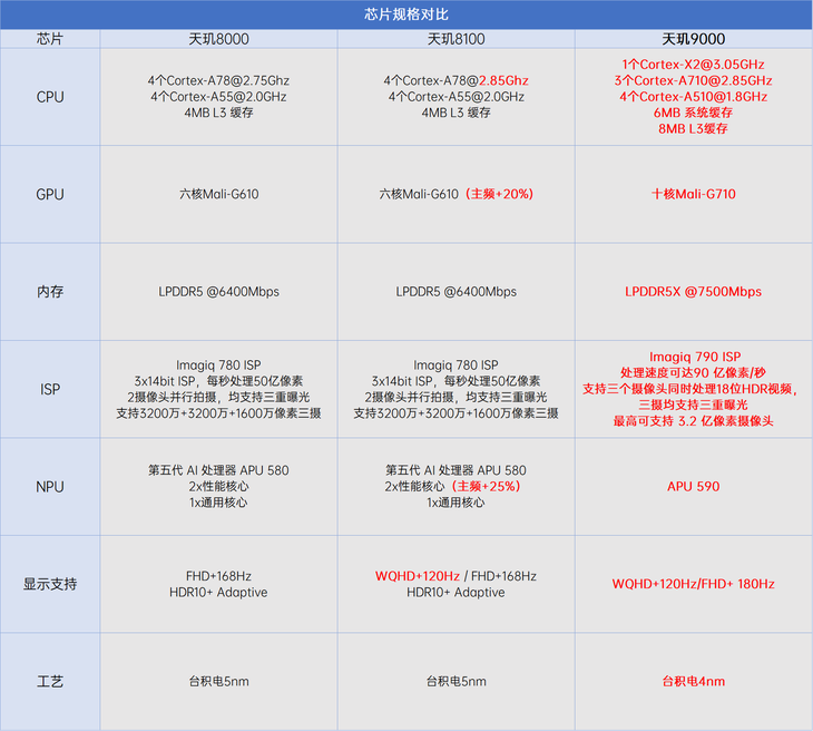 天玑8000-MAX对比天玑9000