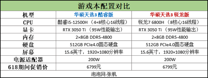 今年,华硕先后推出了天选3 酷睿版和天选3 锐龙版,给了笔者这次酷睿i5-12500H对决锐龙7 6800H的机会。这两款游戏本在眼下618期间都卖6799元,同价位机型,性价比孰高孰低自然也是一大看点。