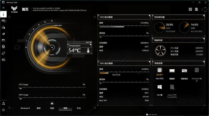 毕竟都是华硕旗下的天选系列机型,这两款游戏本的控制中心基本一致。