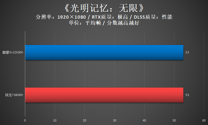测试小结:在此次测试的10款游戏性能当中,酷睿i5-12500H与锐龙7 6800H互有优势游戏。酷睿i5-12500H在新世代光追游戏当中占优,锐龙7 6800H则在网络电竞游戏当中占优。总体来看酷睿i5-12500H的游戏性能与锐龙7 6800H不分伯仲。