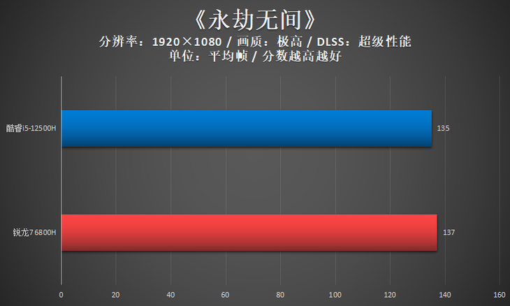 相比英特尔的强势,AMD今年在高性能游戏本平台上的主力战将并不多,结果锐龙7 6800H的性能还略逊于酷睿i5-12500H。虽然AMD还有更高端的锐龙9 6900HX处理器,但是相比锐龙7 6800H仅是功耗和频率上的提升,实际性能并不能给人带来惊喜,玩家们不要抱太多期望。买高性能游戏本,大家还是踏踏实实选择产品丰富、性能又强的12代酷睿平台为上!
