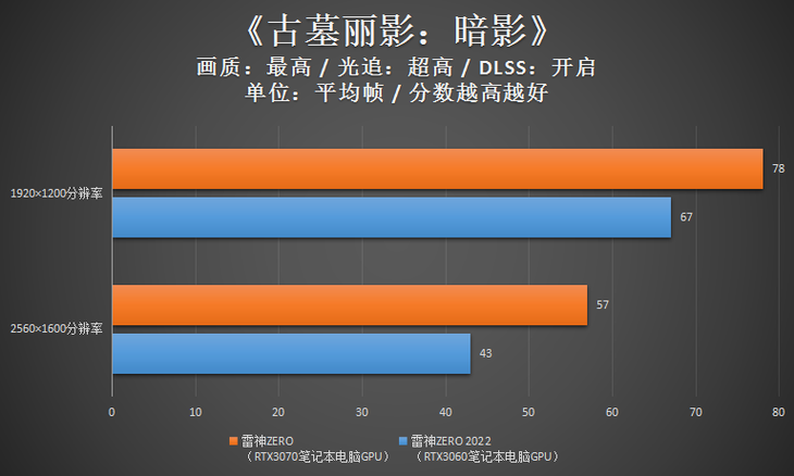 通过游戏实测来看,RTX3070联袂11代酷睿i7无疑有着更出色的游戏表现。特别是在2K分辨率下,RTX3070笔记本GPU不仅GPU规格更强,而且还配备了更大的8GB显存,在高分辨率下更能凸显帧数优势,带给玩家们更流畅的2K游戏。