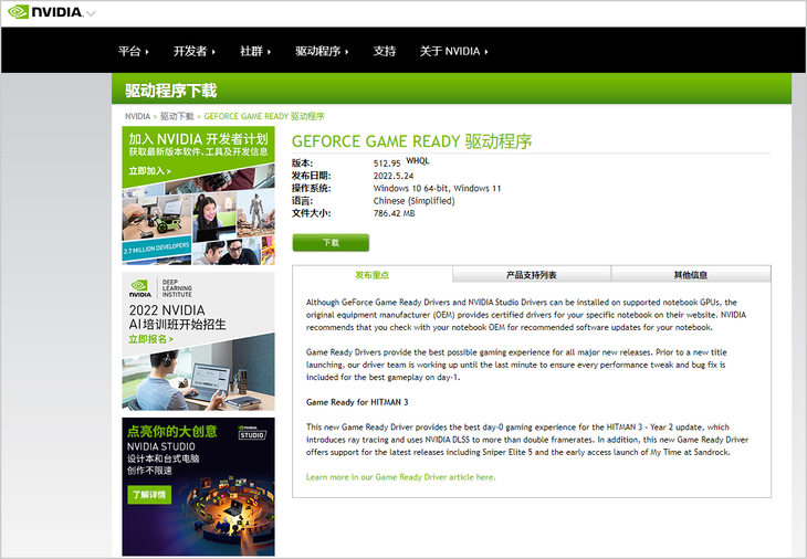 截至开始测试时,NVIDIA官方网站上面,RTX 3060笔记本电脑GPU最新的显卡驱动为NVIDIA 512.95版本。