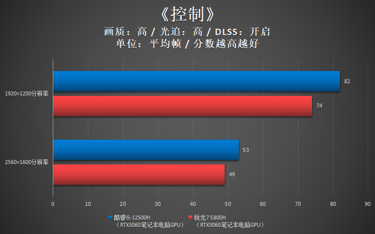测试小结:虽然两款机型的显卡存在略微的功耗设计差异,但是在很多游戏当中锐龙7 5800H都是落后酷睿i5-12500H很多的。平心而论,游戏性能酷睿i5-12500H明显好于锐龙7 5800H。