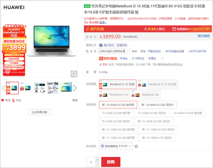 华为轻薄本MateBook D 15 SE版目前仅是3899元。在意价格因素的用户们可以关注下,这款机型真的很实惠,同时还有华为的品牌光环加持。