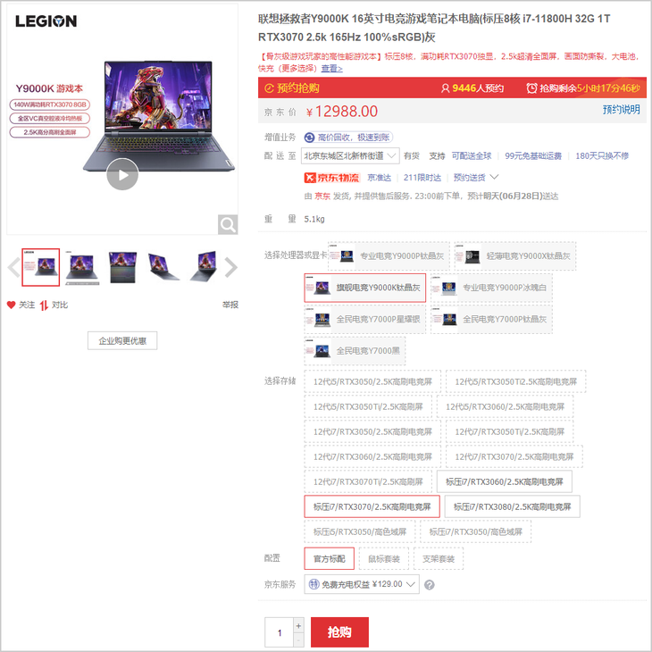 酷睿i7-11800H处理器联袂RTX3060笔记本电脑GPU的机型,目前处于预售状态,售价10988元。