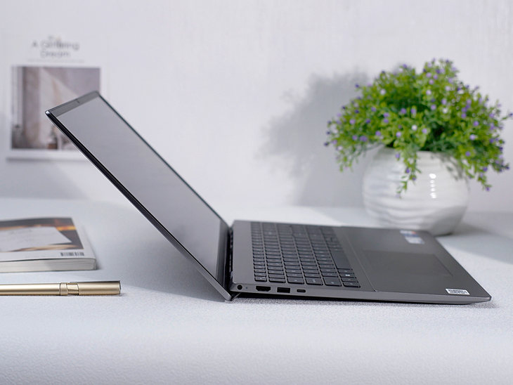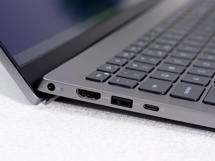 这款大屏商务本的机身左侧设计了一个电源接口、一个HDMI接口、一个USB3.2接口、一个全能Type-C接口。