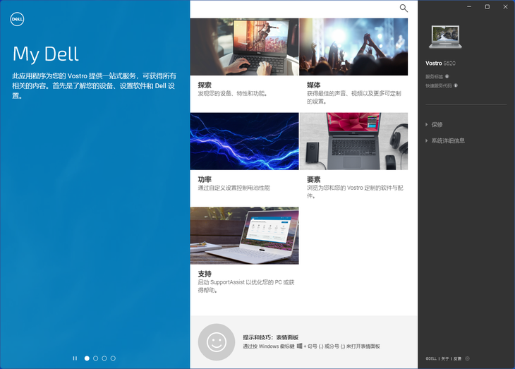 My Dell是戴尔成就5620的主控中心,在这里可以对这款大屏商务本进行详细设置。
