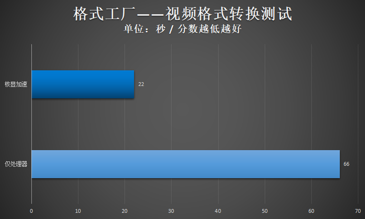 接下来笔者选用格式工厂这款国产优秀的视频格式转换工具,将一段1080p分辨率、59.94帧/秒帧速率、长度达1分21秒的MP4视频,转换成MKV格式(1080p),来瞧瞧Intel Iris Xe Graphics核芯显卡在视频编辑领域的性能表现。
