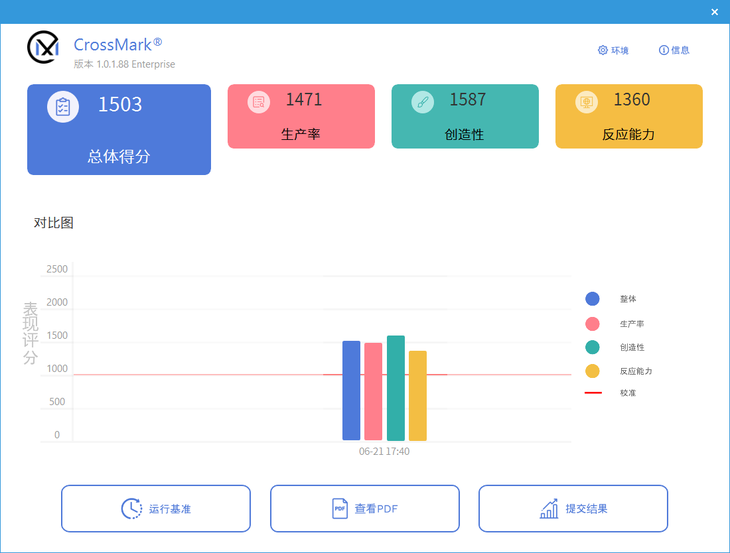 CrossMark的总体得分达到了1503分,表现较好。