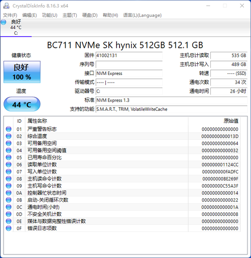 这款大屏商务本搭配了一块512GB容量、PCIe3.0 x4传输模式的固态硬盘。