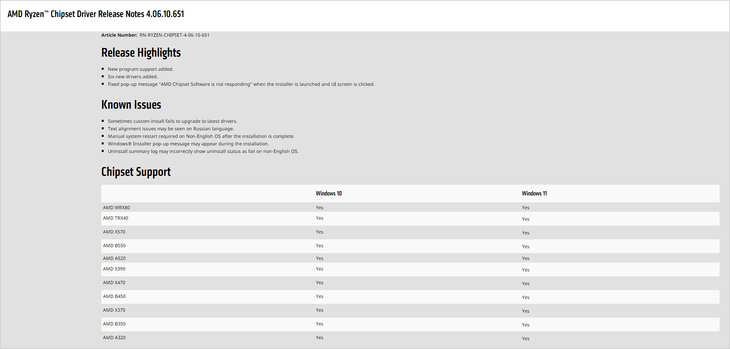 AMD发布4.06.10.651版锐龙芯片组驱动