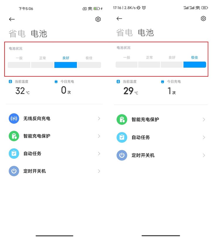 厂商也有相应的提醒,比如要尽量保持电量在20%到80%之间,能让电池处于更好的状态,从而延长电池寿命。