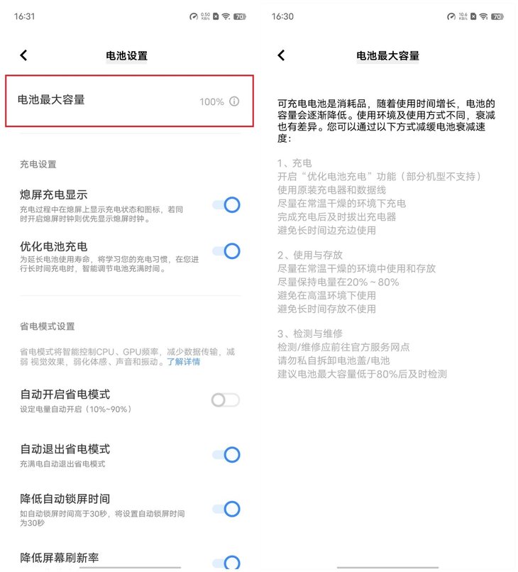 平常我们还可以了解电池健康度信息,已经有不少手机可以在设置中查看该项信息。