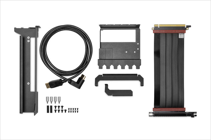 EK这套PCIe4.0显卡垂直支架标配一条PCIe4.0显卡延长线,该延长线通过了AMD RX 6000系列显卡和NVIDIA RTX 30系列显卡的严格测试。同时,尽管这是一条真正的PCIe 4.0延长线电缆,但它也能够与PCIe 3.0完全兼容。