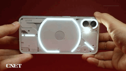 比透明后盖更骚的是,Nothing Phone 1还在其内部线条上隐藏了4条灯带,由900多个LED灯珠组成。