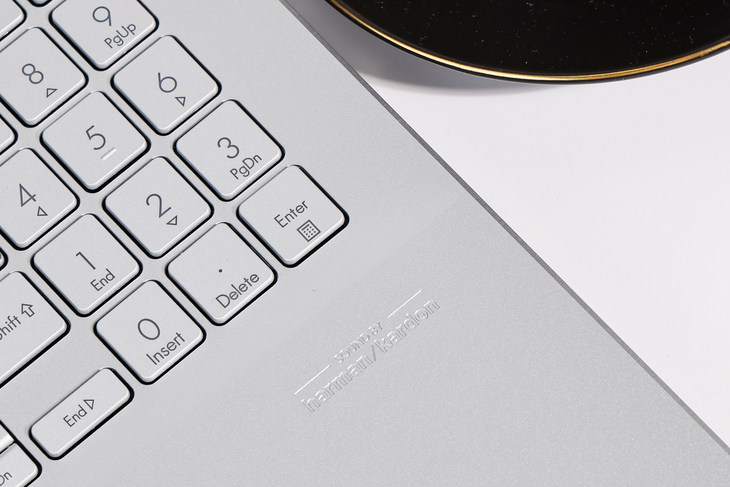 右侧掌托上面标注有哈曼卡顿音响认证的标识。