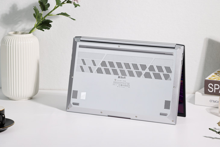 这款轻薄本的机身右侧设计了电源接口、一个USB3.2 Gen1接口、一个HDMI 2.1接口、一个Thunderbolt 4接口,一个TF卡读卡器插槽、一个3.5mm耳机耳麦二合一接口。
