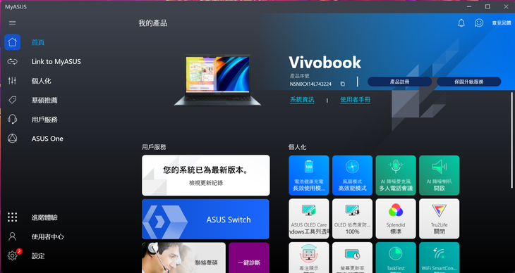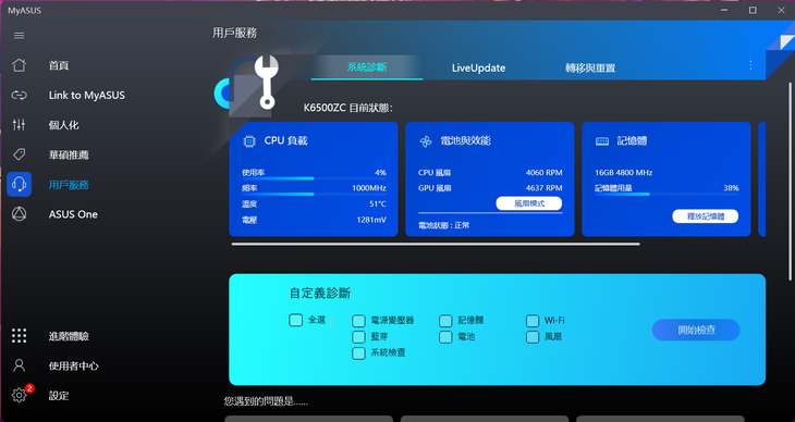 MyASUS还可以帮助诊断电脑系统状况,更新驱动程序等等。