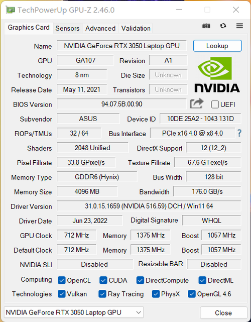 再来重点看一下这款轻薄本所采用的RTX3050笔记本电脑GPU。